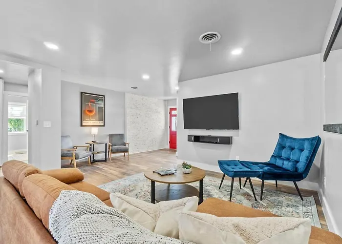**Welcome to Bluebonnet Bungalow - Hot Tub & Fire Pit, a serene retreat nestled in the heart of Fredericksburg, Texas.** Just 100 kilometers from San Antonio International Airport, this charming abode offers an idyllic escape amidst Texas Hill Country's rolling landscapes. With a harmonious blend of modern comfort and rustic elegance, guests are invited to unwind in a setting that feels both welcoming and luxurious.